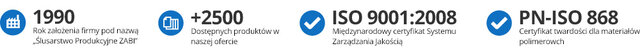 В 2003 году фирма ZABI Sp. z o.o. получила сертификат Системы Управления Качеством ISO 9001:2008. Данная система находится в постоянной работе и развитии.