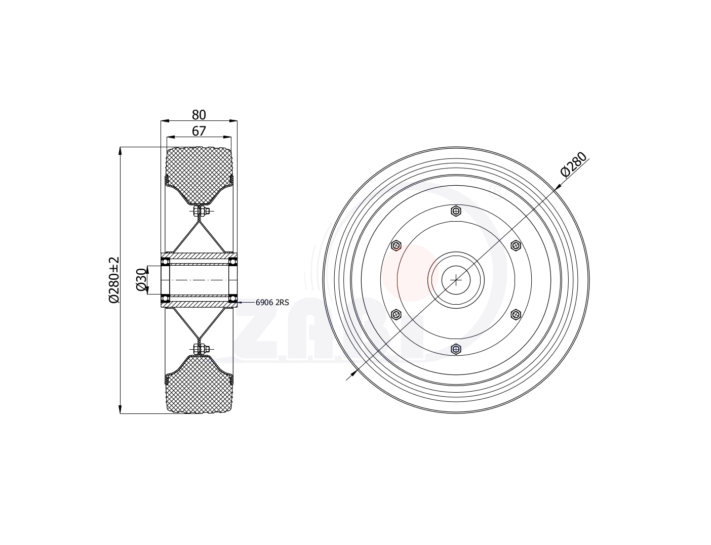 Колёса и наборы колёс, Колеса промышленные (металл +резина), Отдельные колёса с обозначением 280Ł/30