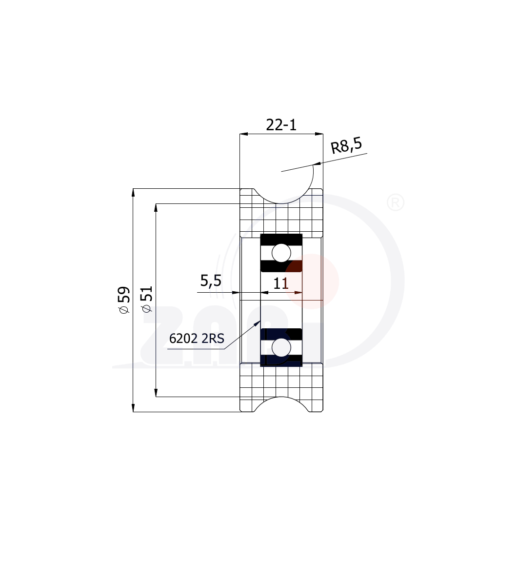 Ролики пластиковые и металлические, Ролики нейлоновые (полиамидные), Пластиковые профилированные под шпагат с подшипником с обозначением C59/16Ł