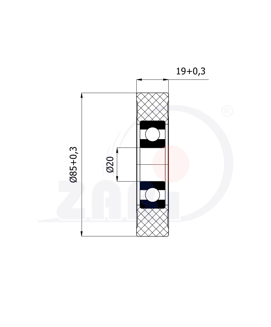 Ролики пластиковые и металлические, Ролики полиуретановые, Ролик полиуретановый на подшипнике с обозначением RP-85-19/20