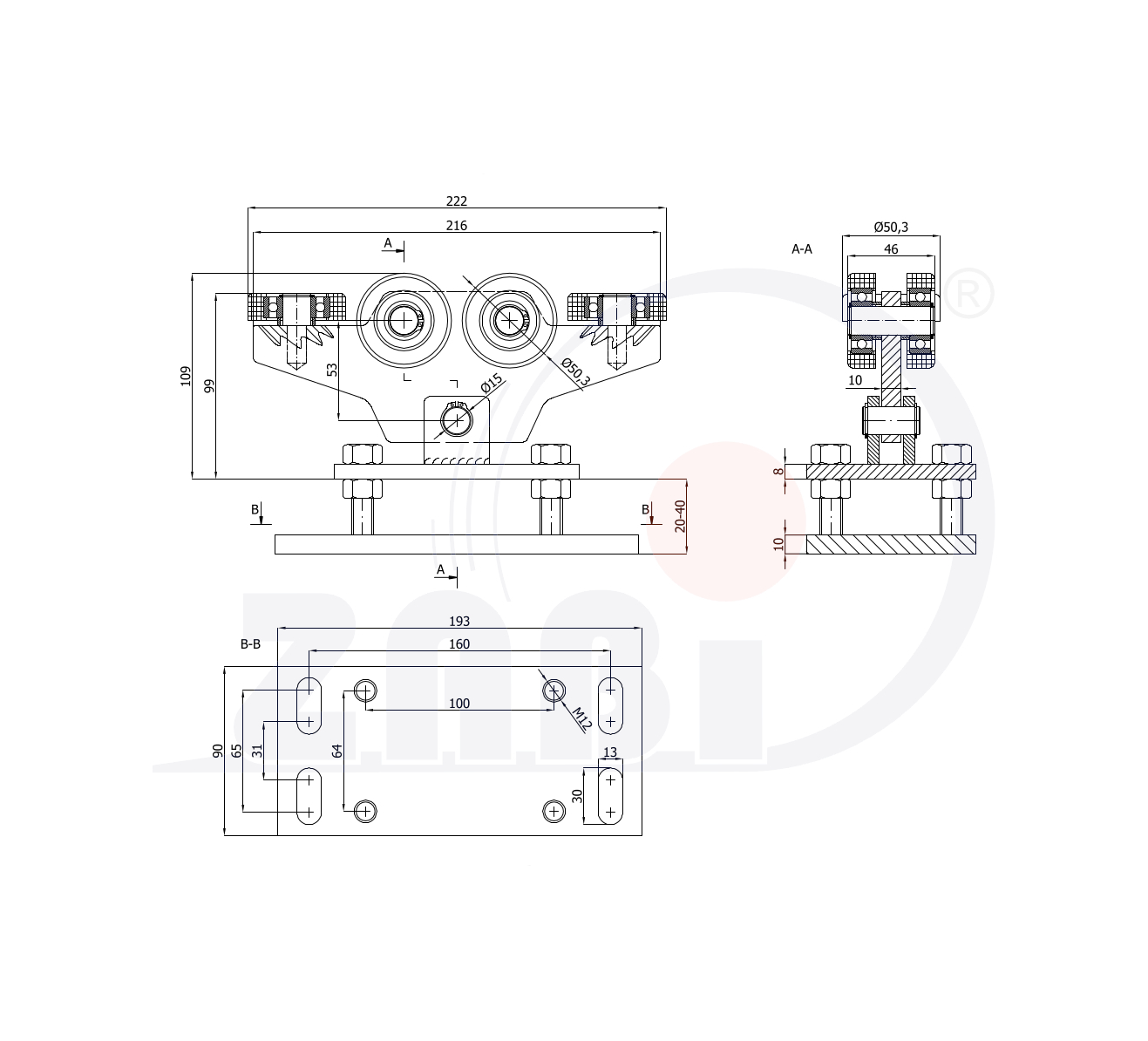 Ролики для откатных ворот, Каретки для откатных воро, Для профиля 60х60 стенка 4мм с обозначением WR-6T-60/4