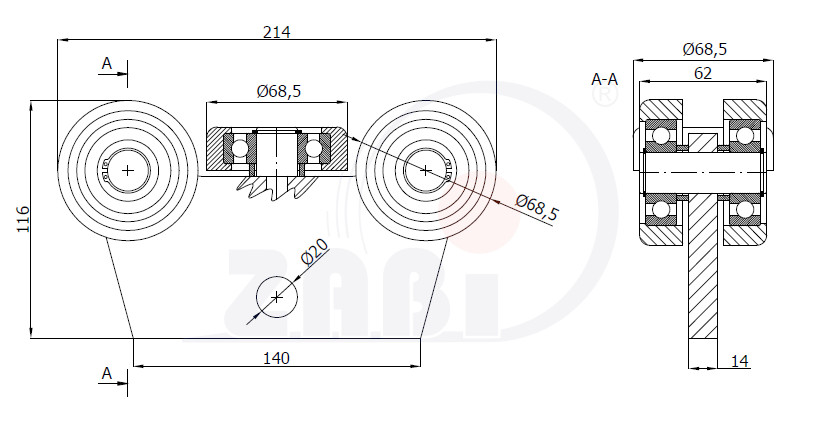 Ролики для откатных ворот, Каретки для откатных воро, Для профиля 80х80 стенка 5мм с обозначением WG-5MM-80