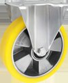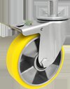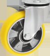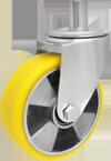 Колёса и опоры фирмы ZABI алюминеево-полиуретановые - это колёса состоящие из алюминиевого корпуса с несъёмным полиуретановым протектором. Протектор изготовленный из полиуретана очень устойчив к истиранию, не оставляет следов на покрытии пола. Полиуретан является высококачественным материалом, который благодаря высокому модулю сжатия и сохранения формы характеризуется низким износом и особенно хорошо подходит для протектора. Колёса и опоры алюминеево-полиуретановые характеризуются высокой грузоподъёмностью а также не окрашивают поверхность и сами не абсорбируют цвет. Тихоходные, нивелируют вибрацию и удары. Отличаются низким сопротивлением при перемещении. Колёса и колёсики алюминеево-полиуретановые можно использовать при температуре от -20°C do +70°C. Твёрдость стандартного протектора составляет 92° по Шору. Отличаются невосприимчивостью к смазкам, натуральным маслам, бензину и растворителям, что в свою очередь увеличивает область их применения. Колёса и опоры алюминеево-полиуретановые поставляются с игольчатыми подшипниками. Уровень шума при работе и уровень защиты покрытия для данного продукта является очень хорошим.