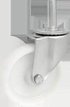 Пластиковые колёса и колёсные опоры фирмы ZABI изготовлены из полиамида PA 6, который идеально подходит для изделий крепких и прочных. В особенности хорош для производства изделий предназначенных для контакта с продуктами питания (одобрен Госслужбой эпидемиологии Польши). Корпус полиамидного колеса цельный, белого либо чёрного цвета. Полиамидные колёса и колёсики комплектуются игольчатым подшипником (законсервированным смазкой), шариковым (размер подшипника подобран к диаметру колеса) а также подшипниками скольжения. Пластиковые колёса и колёсики устойчивы к истиранию и термоустойчивы, допустимая температура постоянной работы от -20 до +80°C. Колёса изготовленные из полиамида не подвержены растрескиванию, не вредят покрытию пола, не генерируют шумы и вибрацию. Имеют долгий срок службы.